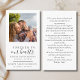 Dimensions cartes de visite : 3,5 po x 2,0 po. Cette simple carte de prière commémorative peut être donnée en souvenir lors d'une célébration de la vie ou d'un service funéraire ou envoyée en hommage spécial à ceux qui n'ont pas pu y assister. Personnalisez cette carte avec les photos préférées de vos proches et votre choix de prière ou de poème. Facile à customiser. Nos sincères condoléances à vous et à votre famille pendant cette période très difficile.