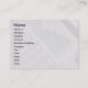 Carte de visite, taille : États-Unis : 8.9 cm x 5.1 cm, papier : Standard Semi-brillant, coins : Carré