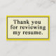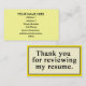 Cartes de visite entièrement personnalisables avec votre information de contact personnelle. Chaque fois que vous envoyez un résumé, remettez un résumé à un employeur potentiel à un salon de l'emploi, ou rencontrer un interviewer, vous devriez avoir l'abondance des cartes de visite personnalisés à portée de la main. Il est encore meilleur s'il y a "vous remercient" message sur les cartes. Nos en trait plein des cartes de visite incluent les cartes qui indiquent que "merci de passer en revue mon résumé", "merci de me rencontrer", "j'attends avec intérêt d'avoir de vos nouvelles", et de plus. Soyez professionnel !