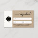 Une belle façon de réserver votre prochain rendez-vous à vos clients avec cette carte de rendez-vous professionnelle de couleur marron kraft. La carte de rendez-vous client peut être personnalisée pour votre texte, code QR, le pseudo des médias sociaux et le logo de l'entreprise.