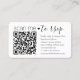 Partagez l'une de vos photos de fiançailles ou de mariage et simplifiez les réponses de RSVP avec des cartes d'accompagnement de QR Code chic et moderne. L'image et tout le texte sont faciles à personnaliser. (ASTUCE DE PLACEMENT D'IMAGE : Un moyen facile de centrer une photo exactement comme vous le souhaitez est de la rogner avant de la télécharger sur le site Web de Zazzle.) En scannant le code QR avec leur téléphone, les invités sont directement envoyés sur le site Web de mariage pour répondre à l'invitation. Un processus de RSVP en ligne réduit les risques que les cartes soient perdues dans le courrier. C'est également plus polyvalent, en ce sens que vous pouvez demander des informations plus détaillées, telles que les choix de repas, les allergies alimentaires et les demandes de chansons. Toutes les informations de réponse peuvent être personnalisées ou supprimées. Le design noir et blanc présente une typographie minimaliste moderne, une calligraphie manuscrite et 1 photo de votre choix. Cette carte est un moyen élégant de demander à vos invités de mariage de bien vouloir répondre à votre célébration de jour spécial à venir.