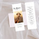 Capturez l'essence profonde des souvenirs chéris avec notre "Carte de Signet photo funéraire espagnole En Memoria". Délicatement scénarisé en calligraphie, "En Memoria" fait honneur au front, servant d'hommage aimant. Il contient dans son pli une photo chère, le nom durable et un verset espagnol sincère, une étreinte de l'amour éternel et des sentiments sincères. A l'arrière, ce gardien permet l'espace pour des expressions tendres d'amour, un lieu où s'inscrire des paroles sincères de souvenir et de gratitude. En tant que signet en espagnol, il transcende de simples pages, symbolisant un mémorial poignant pour ceux qui nous tiennent à coeur. Il est méticuleusement conçu pour les cartes funéraires en espagnol, un témoignage de respect et d'amour durable. "En Memoria Amorosa" résonne profondément, encapsulant l'essence de l'amour éternel et des moments chéris. Customisez ce souvenir chaleureux avec votre touche personnelle, ce qui vous permettra de faire écho à vos émotions profondes et de préserver l'héritage de votre bien-aimé.