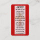 Carte de visite, taille : États-Unis : 8.9 cm x 5.1 cm, papier : Standard Semi-brillant, coins : Carré