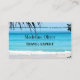 Une belle image du bord de mer est l'arrière - plan de ce carte de visite de plage Tropical Boarding Pass Destination. Un design personnalisé de destination amusante. Carte de visite de voyage professionnel. Plage tropicale avec bleu aqua et texte moderne.