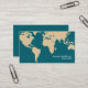 Un carte de visite pour un agent de voyage, ou tout autre professionnel... avec l'image d'une carte du monde surdimensionnée imprimée sur un arrière - plan bleu foncé... avec le nom imprimé dans le style de police serif.
