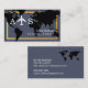 Une idée moderne et élégante pour promouvoir les professionnels du tourisme... Un simple monogramme (initiales et un avion), votre nom avec une occupation liée au voyage sur mesure (agent de voyage)... et l'adresse de contact, et des mots liés à la profession à l'arrière, avec l'image de la carte du monde et l'image fausse or...