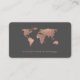 Parfait pour tous ceux qui travaillent dans le domaine du voyage, ce luxueux carte de visite présente une carte du monde en or faux rose sur un arrière - plan gris fumée moderne.