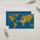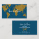 Bel carte de visite pour un agent de voyage, ou tout autre professionnel... avec l'image d'une fausse carte dorée (couleur ocher simulant l'or) du monde et nom manuscrit sur l'arrière - plan bleu océan