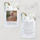 Cette carte de prière est recto verso et peut être personnalisée avec votre libellé pour honorer votre être cher lors d'un enterrement, d'un mémorial ou d'une célébration de la vie. L'option papier à soie haut de gamme fournit la lamination et est résistant à l'eau et aux déchirures. Les cartes sont ornées d'oeuvres d'art florales blanches.