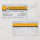 Caractéristiques de conception ce uniques un arrière - plan de cloison sèche de faux avec une flèche jaune qui enroule autour de l'avant et du dos de la carte. Il y a d'abondance de texte personnalisable pour que vous ajoutiez toute votre information d'affaires. Montré ici en tant qu'entreprise de construction, cette conception flexible est idéale pour presque n'importe quelles affaires.