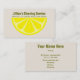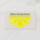 Une carte d'entreprise de services de nettoyage comportant un thème naturel de nettoyage. L'avant comporte une illustration d'une cale de citron en bas. Personnalisez le texte vert sur l'avant et le dos.