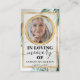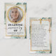 Carte de prière entièrement Customisée avec une croix décorative sur le dos et versets de prière que vous pouvez customiser. La carte de prière est fournie avec une photo personnalisable et personnalisée et avec un nom et une date personnalisés des funérailles. Le design comprend un style script et écriture/calligraphie ainsi que des polices élégantes et élégantes.