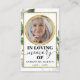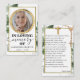 Carte de prière entièrement Customisée avec une croix décorative sur le dos et versets de prière que vous pouvez customiser. La carte de prière est fournie avec une photo personnalisable et personnalisée et avec un nom et une date personnalisés des funérailles. Le design comprend un style script et écriture/calligraphie ainsi que des polices élégantes et élégantes.