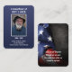 Ombre bleu avec votre photo préférée dans le cadre. La typographie moderne est utilisée. Au verso de la carte se trouve un texte supplémentaire qui peut être customisé sur le drapeau américain.