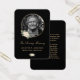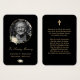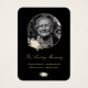 Cartes de mémoire florale noir et jaune personnalisées/cartes de prières funéraires avec cadre photo doré orné de roses d'aquarelle jaune et de fleurs d'haleine de bébé.