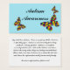 Le dos de la carte est bleu ciel avec 3 puzzleflies et le texte "Sensibilisation sur l'autisme". L'autre côté a une brève info sur l'autisme. En bas, il dit "pour plus d'informations, veuillez visiter" et il y a assez d'espace pour que vous puissiez ajouter VOTRE site de sensibilisation sur l'autisme préféré. N'oubliez pas de customiser cette zone avant de partir.
