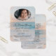 Belles cartes mémoire/cartes de prières funéraires avec cadre photo sur un arrière - plan avec vue sur la mer. Éléments correspondants disponibles.