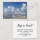 Sur une photo originale d'une scène de plage avec d'immenses nuages blancs extraordinaires dans un ciel bleu, j'ai placé un texte blanc portant le titre, "Les Olivers ont bougé". Ce type a été rendu dans une jolie police de caractères moderne et audacieuse. Idéal pour quelqu'un qui vient de déménager à la plage. N'hésitez pas à remplacer ma photo par la vôtre, si vous voulez. Vous pouvez choisir de changer seulement votre nom, ou tout le message. Utilisez le champ modèle pratique pour le faire ! Au dos, la même police de script a été utilisée pour taper "Keep in Touch !" en noir. En dessous, des champs modèles sont fournis pour une variété de vos nouveaux détails. Modifiez le libellé à votre gré. Vous pouvez également modifier les couleurs du texte, le placement et même les polices ! // Conçu par Melody Watson pour Paper Muserie.
