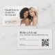 Ce design élégant associe un beau portrait chaleureux à une typographie serif sophistiquée pour un look soigné et haut de gamme. Le devant présente la phrase « Les beaux cheveux sont faits pour être partagés » aux côtés d'une photo douce et neutre de deux femmes souriantes, créant une esthétique de salon amicale et inspirante. Le verso comprend une mise en page de parrainage épurée avec un espace pour les noms, un code QR et les détails de réservation, ce qui rend le design à la fois pratique et visuellement raffiné. C'est un choix judicieux pour les studios de coiffure et les marques de beauté qui souhaitent une expérience de parrainage client moderne et invitante.