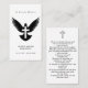 Cette simple carte de prière commémorative peut être donnée en souvenir lors d'une célébration de la vie ou d'un service funéraire ou envoyée en hommage spécial à ceux qui n'ont pas pu y assister. Le design présente une colombe en vol ornée d'une croix. Personnalisez cette carte avec le nom de votre être aimé, les dates et votre choix de prière ou de poème. Facile à customiser.