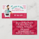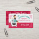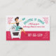 Cartes de visite super mignons avec femme au foyer de style rétro portant un tablier, petite robe noire et mitt au four, assis sur sa cuisinière, heureux d'être cuisine ou de cuisson. Des cartes magnifiques pour des cours de cuisine ou de cuisson ou d'enseignement culinaire.