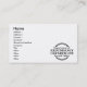 Carte de visite, taille : États-Unis : 8.9 cm x 5.1 cm, papier : Standard Semi-brillant, coins : Carré