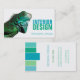 Design d'intérieur, carte de visite décoratrice d'intérieur avec caméléon. Coloré - dans les tons vert et turquoise - deux côtés design modèle.