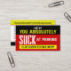 Un ensemble de 100 de ces cartes ferait un cadeau génial pour la "patrouille communautaire" à distribuer comme billets de stationnement! Les gens qui ont du mal à se garer doivent savoir que leur comportement malin a été remarqué, et les gens pensent qu'ils sont idiots, n'est-ce pas ? Vous pouvez facilement customiser ces cartes et ajouter/modifier des "raisons" personnalisées au dos de votre choix. Ou laissez-les "tels quels". Certaines personnes aspirent au parking, et ils ont besoin de vos cartes de visite placées sur leur pare-brise !