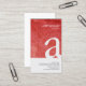 Un design carte de visite simple, élégant et professionnel avec la partie supérieure avec un arrière - plan de texture grunge rouge. Votre lettre de monogramme apparaît dans une grande police qui s'écoule dans une partie inférieure de la carte qui n'est pas blanche. Votre nom et vos coordonnées apparaissent sur le côté droit de la carte. Le design simple et élégant crée une image très contrastée qui est puissante et professionnelle. Parfait pour les thèmes graphiques, professionnels, design, élégants, sérieux. Customisez-le immédiatement avec votre nom et vos coordonnées.