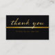 Dites merci pour les cadeaux que vous avez reçus de vos amis et connaissances qui sont venus à votre fonction spéciale en portant des cadeaux avec cette élégante et minimale carte de remerciements. Un "merci" dans une police manuscrite/calligraphie en faux or sur une surface noire avec une barre en faux or et votre nom sur un côté et un simple texte de remerciement sur l'autre.