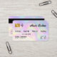 Améliorez votre image de marque avec ces cartes de visite luxueux et irisés. L'effet holographique chatoyant et la conception sophistiquée des cartes de crédit créent une première impression inoubliable. Parfait pour les salons de cheveux haut de gamme qui cherchent à projeter une image d'exclusivité et de service de haute qualité. Customisez avec le logo et les détails de votre salon.