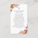 Dimensions cartes de visite : 3,5 po x 2,0 po. Cette simple carte de prière florale monumentale peut être donnée comme un gardien à une Célébration de la Vie ou service funéraire ou envoyé comme un hommage spécial à ceux qui n'ont pas pu assister. Personnalisez cette carte avec une photo préférée et votre choix de prière ou de poème au dos de la carte. Facile à customiser.
