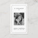 Une carte de payeur commémorative élégante avec une photo. La conception comprend une photo, un nom et une date sur le devant, ainsi qu'une prière ou un message de sympathie sur le dos.