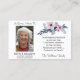 Souvenez-vous de votre bien-aimé lors de ses funérailles ou de son service commémoratif et partagez une carte de prière avec vos amis et votre famille avec cette jolie et élégante carte de prière commémorative. Ce carte photo funéraire présente un arrière - plan blanc avec un élégant bouquet de fleurs bleues. Entrez une prière ou une déclaration personnelle ou gardez ce poème poignant tel quel. Insérez une photo de votre bien-aimé sur le devant avec pièce pour ajouter un nom, des dates et une relation.