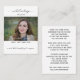 Elégante carte de prière funéraire photo. Design simple avec script et police moderne, espace photo et prière tendre. Cette carte de prière et ce signet est un joli souvenir de la vie de votre être cher pendant une célébration de la vie, funérailles ou service commémoratif en leur honneur. Personnalisez la carte avec vos propres informations. La prière peut être customisée pour votre préférence ou utiliser la prière incluse. Trouvez d'autres produits de commémoration et de commémoration comme celui-ci dans la collection Modern Script Celebration of Life dans la boutique The Gathering Designs.