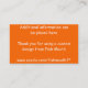 Carte de visite, taille : États-Unis : 8.9 cm x 5.1 cm, papier : Standard Semi-brillant, coins : Carré