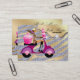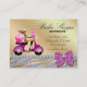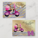 Le carte de visite de petit gâteau de boulangerie avec la femme de scooter d'amusement et les parties scintillantes de zèbre impriment.