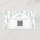 Un design feuille moderne et élégant vert et blanc aquarelle eucalyptus verdure, avec un motif assorti à l'envers. Script minimaliste et type pour un look frais et contemporain. Modifiez le texte et l'adresse du site Web de code QR pour personnaliser. Art original de Nic Squirrell.