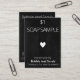 Cette carte d'affichage en tableau noir pour votre savon est un excellent moyen et économique de promouvoir votre savon fait main à un prix ou à un marché. Pour utiliser cette carte, couper les deux lignes verticales au milieu de la carte avec une lame et filtrer une petite coupe rectangulaire de l'un de vos savons à travers. Le design est défini sur un arrière - plan de tableau de bord et vous pouvez facilement modifier vos propres détails en cliquant sur "personnaliser".