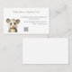 Rendez votre liste de naissance facile à partager avec cette adorable carte d'insertion de thème forestier. Le doux opossum aquarelle et la mise en page neutre et épurée créent un look doux et moderne qui s'intègre parfaitement aux fêtes de naissance sur le thème de la forêt, de la verdure et de la forêt. Personnalisez simplement vos détails ou ajoutez un code QR et glissez la carte à l'intérieur de vos invitations.