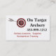 Fournitures et leçons de tir à l'arc carte de visite avec flèche au centre de la cible. Customisez avec vos propres informations commerciales.