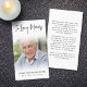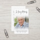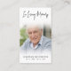 Funérailles Modernes En Mémoire Amoureuse Carte De Prière Photo. Gardez la mémoire d'un être cher proche avec cette carte de prière personnalisée avec une photo chère, le titre EN MÉMOIRE D'AMOUR, le nom et les dates et un message de souvenir chaleureux modifiable. Avec son design simple classique noir et blanc et son écriture manuscrite moderne, il fait un souvenir significatif à partager à un enterrement, service commémoratif ou Célébration de la Vie et offre le confort et un hommage durable à la famille et aux amis. Sa petite taille portable de 3,5x2" (taille porte-monnaie) permet aux proches de la porter avec eux pour rappeler la vie et l’esprit de l’être aimé.