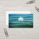 Cartes de visite horizontaux élégants pour des studios de yoga, des moniteurs de yoga, des spas ou des professionnels du bien-être. Cette carte présente une fleur de lotus blanc sur un arrière - plan subtil aux tons bleu et vert avec des vagues océaniques apaisantes.