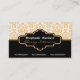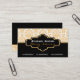 Carte de visite aux intérieurs damassés d'un blanc noir orange, orangé et blanc, damassé. La partie inférieure est de couleur noire solide. Une bande noire et une bande orange séparent les deux parties. Votre entreprise/nom est tapé sur un cadre noir élégant avec contour blanc et orange.