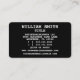 Carte de visite, taille : États-Unis : 8.9 cm x 5.1 cm, papier : Standard Semi-brillant, coins : Carré
