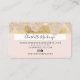 Un élégant carte de visite moderne et élégant de style de carte de crédit de beauté avec une typographie de police de script moderne sur une parties scintillant jaune d'or chic goutte sur le rose pastel doux. tout le texte est personnalisable, ajoutez vos médias sociaux. Doté d'une bande d'or faux rose. Ajoutez votre logo, votre monogramme et votre code QR.