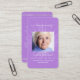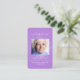 Un arrière - plan couleur lavande, un Espace pour votre photo. Poutres claires, derrière la photo. Personnalisez et ajoutez le nom, les dates, le texte et la prière.