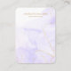 Cette élégante carte à bijoux présente un marbrage d'aquarelle lavande douce avec une délicate veine d'or, créant une toile de fond rêvée et féminine. L'avant est conçu pour présenter votre marque et votre slogan dans une police serif chic, tandis que l'arrière comprend de l'espace pour votre site Web, email et numéro de téléphone, entièrement personnalisable. Parfait pour mettre en valeur les boucles d'oreilles, les colliers ou les bracelets, ce design est idéal pour les propriétaires de boutique, les marques de bijoux artisanaux et les créateurs qui veulent une présentation raffinée et gracieuse pour leur emballage.