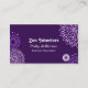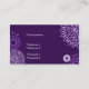 Beau carte de visite fait dans une couleur pourpre, avec des graphiques des fleurs dans le blanc et des nuances de pourpre. Le texte dans le blanc est entièrement personnalisable pour lire ce que vous voulez. Personnalisez le texte sur l'avant et le dos pour une carte renversante qui fait une grande première impression.