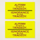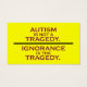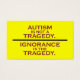 L'autisme n'est pas une tragédie. L'ignorance est la tragédie. Conception simple en texte seulement à partir de autistart.com. Cartes d'activistes.